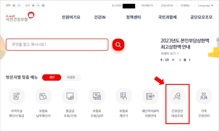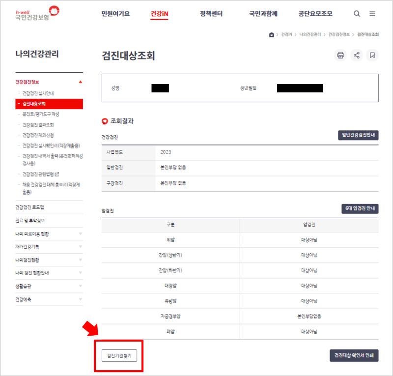 건강검진 대상자 조회 방법은 아래 홈페이지에서 확인할 수 있습니다.