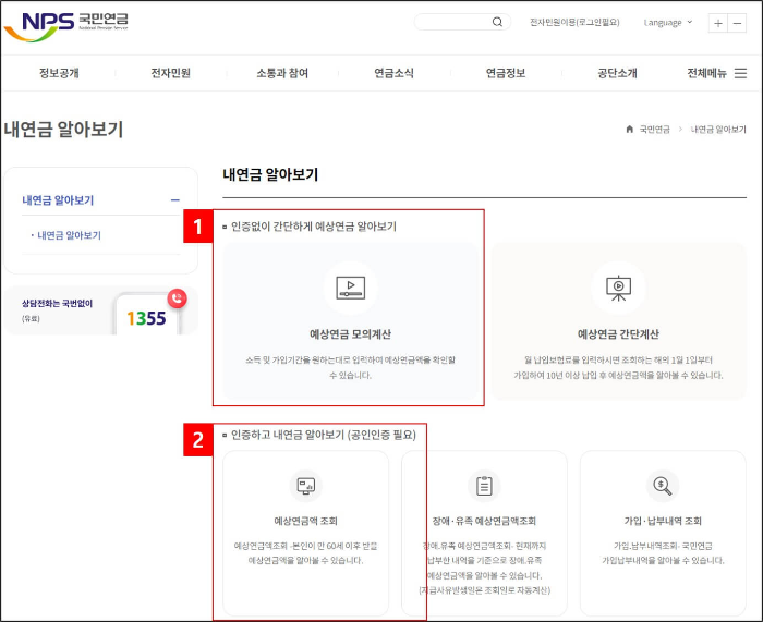 1. 국민연금 수령액 알아보기 (PC 확인)