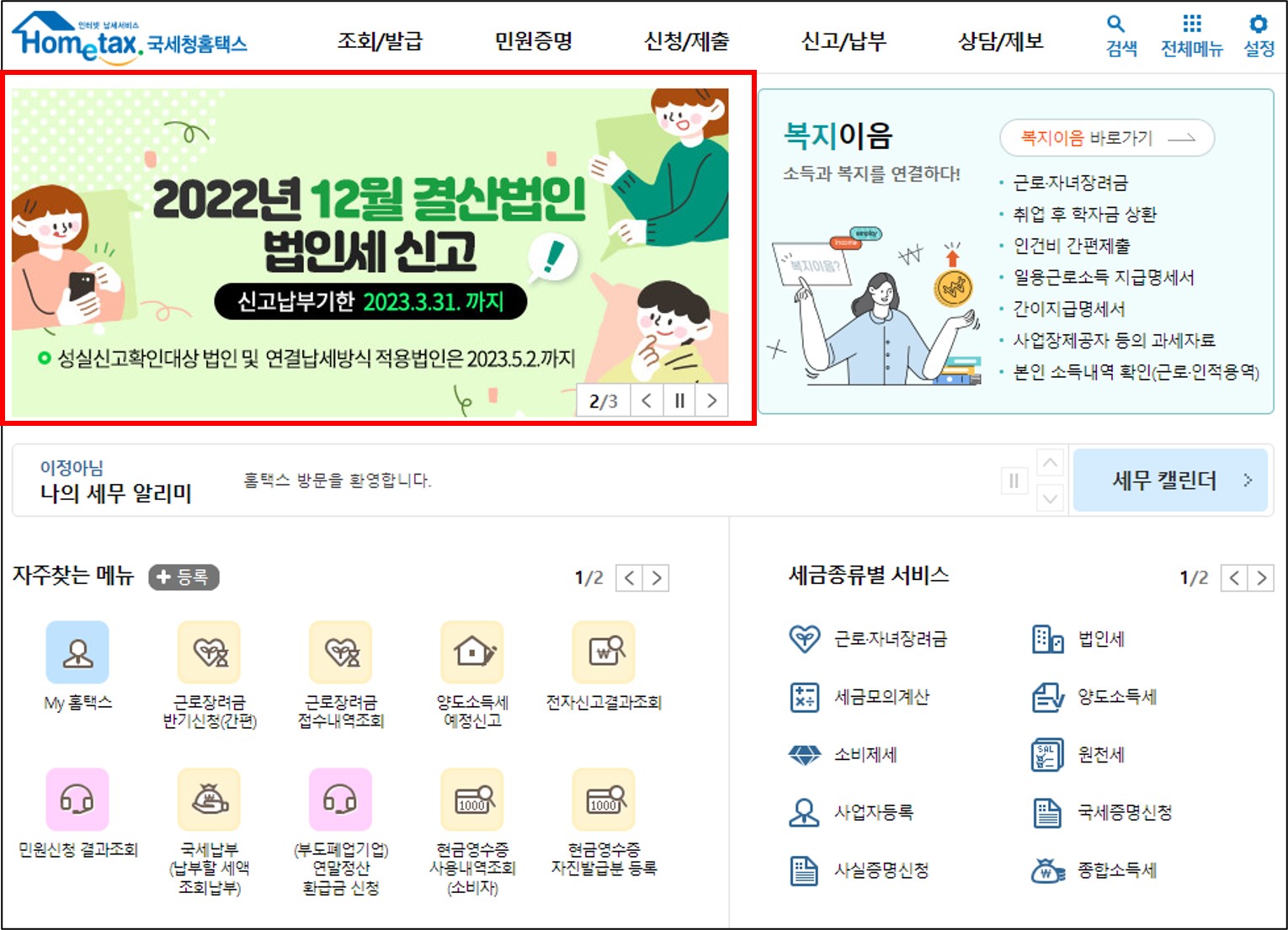 법인세 신고는 국세청 홈택스 홈페이지에서 인터넷으로 신고할 수 있습니다.