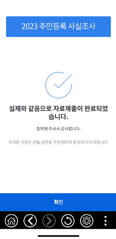 ✅ 위 내용까지 모두 확인 후 자료 제출을 클릭하면 비대면 주민등록 사실 조사 완료!
