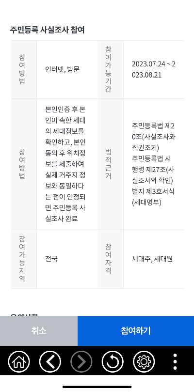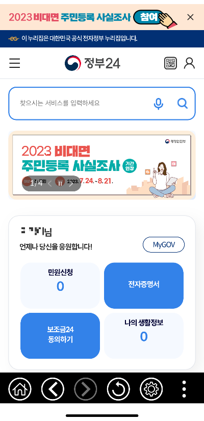 ✔ 2023년 7월 24일 ~ 8월 21일까지 정부 24 앱을 통한 비대면 주민등록 사실조사 가능