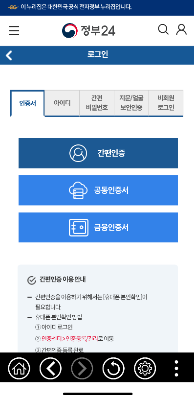 ✅정보 24 앱에 접속해 간편 인증 로그인을 합니다.