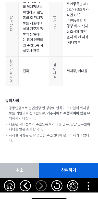 ✔ 그중 현 위치가 거주지인 사람만 비대면 주민등록 사실조사에 참여할 수 있습니다.