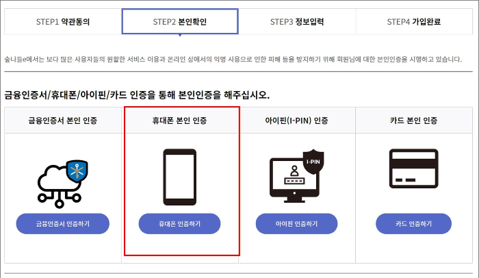 4) 본인 인증 : 휴대폰 인증하기 선택
