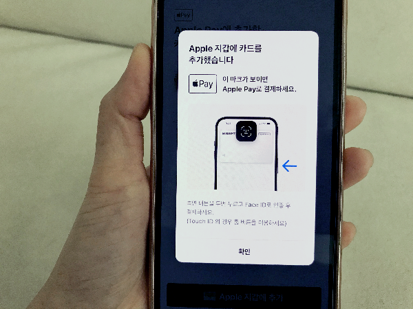 애플페이 현대카드 등록이 완료되면 애플페이 결제 방법 안내 팝업창이 뜹니다.