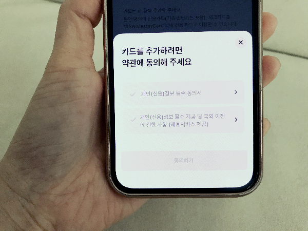 카드 추가를 위한 약관 동의 2가지를 합니다.