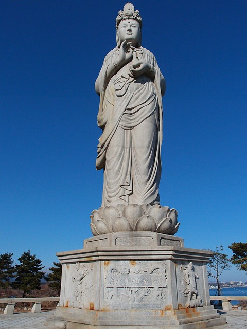 낙산사 의상대에 오르면 푸르고 깊은 동해와 해수관음상이 마음까지 편안하게 만들어줍니다. 낙산사는 우리에게도 익숙한 의상대사가 만들었다고 합니다. 낙산사에 가면 의상 기념관도 함께 만날 수 있습니다.