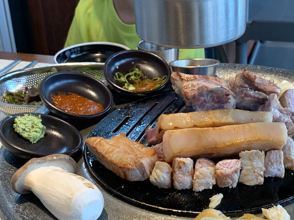 가장 유명한 뼈등심과 교차숙성흑돼지를 맛보았습니다. 뼈목살도 먹고 싶었지만 이미 품절이 되었다고 하여 앞의 2가지 메뉴로 선택했습니다. 점원들이 능숙하게 고기를 구워주고 맛있게 먹는 법까지 알려주어 무척 좋았습니다.