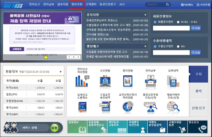개인통관고유부호 조회를 끝냈다면 국가관세종합정보망 서비스 홈페이지에 접속합니다.