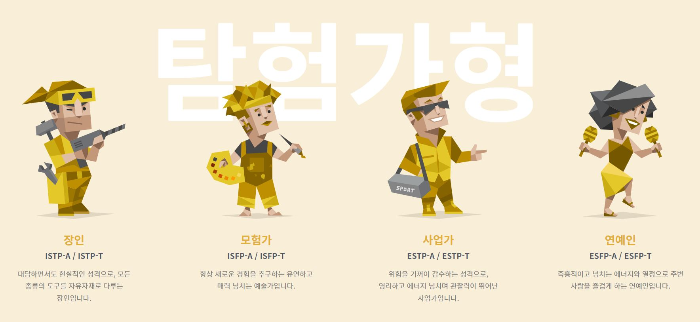 - ISFP : 항상 새로운 경험을 원하며 유연하고 매력적인 예술가입니다.