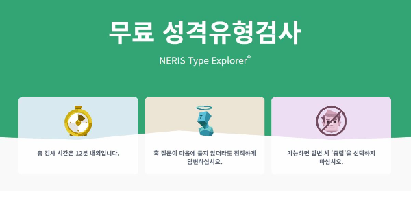 정확한 성격유형 테스트를 위해서는 정직하게 답변하는 것과 답변 시 '중립'은 되도록 선택하지 않는 것이 중요합니다.